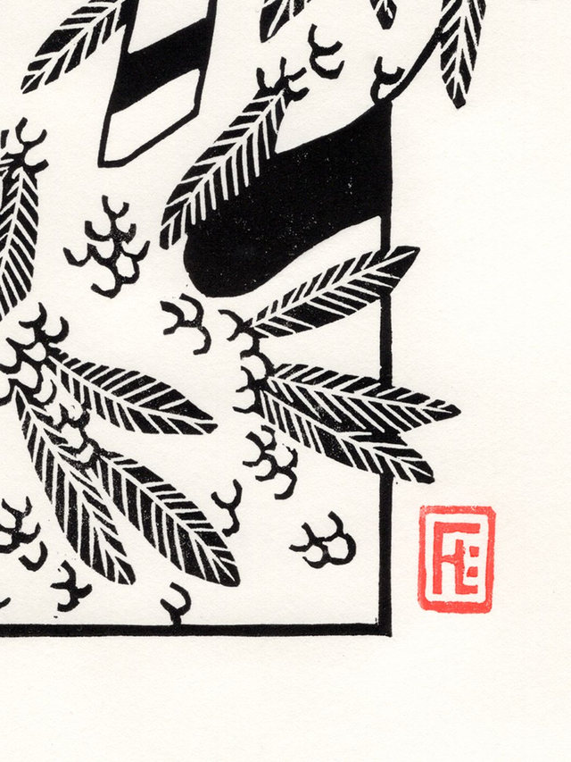 Linogravure imprimée en 12 exemplaires, signés et numérotés.